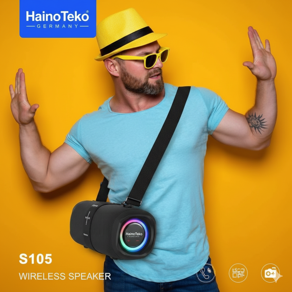 مكبر صوت لاسلكي محمول هاينو تيكو S105 - صوت جهير عميق واتصال بلوتوث